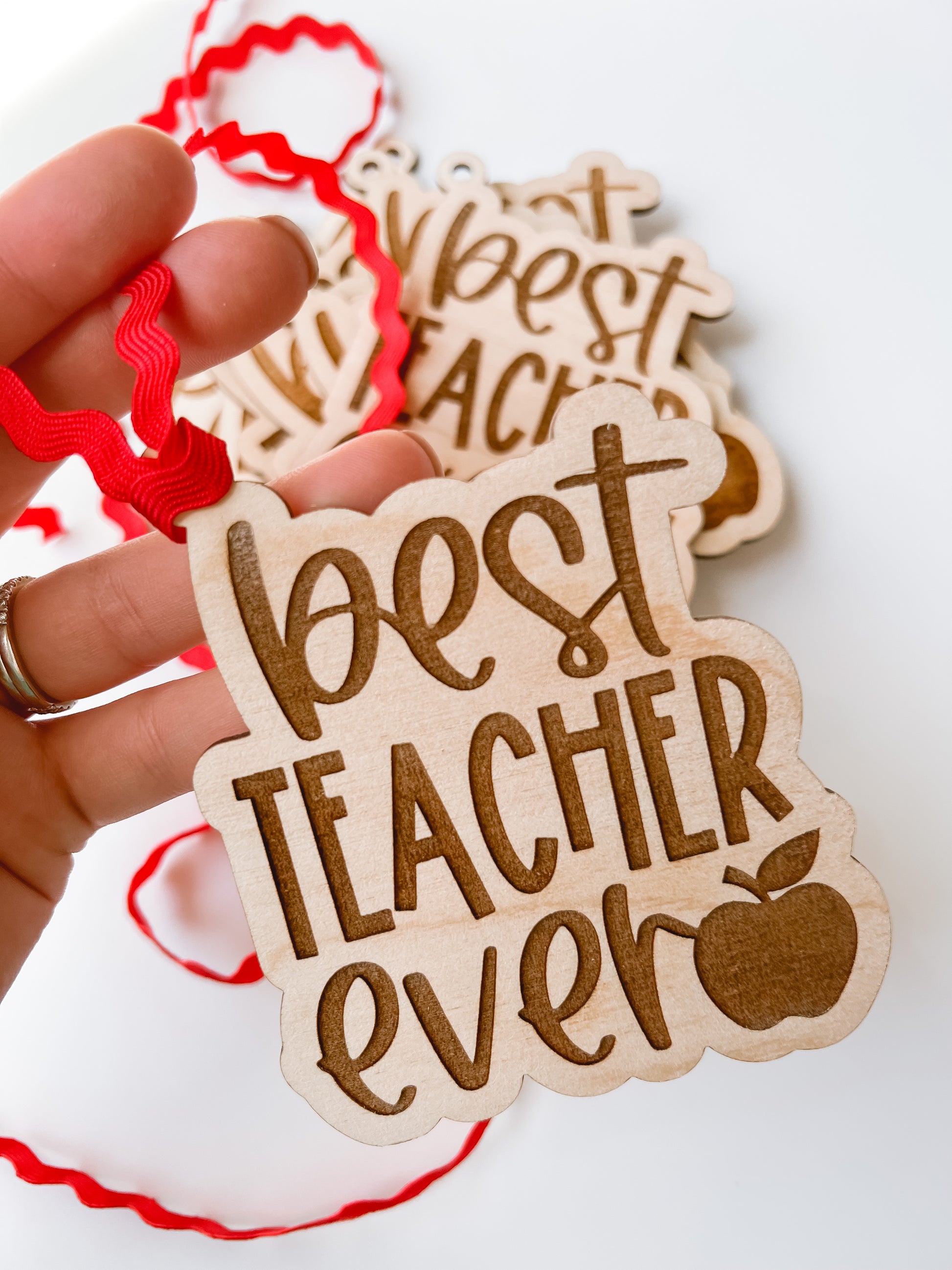 These wooden tags are the perfect gift tag for any teacher! Choose from three different saying and add them to a bottle of wine, a gift basket and so much more. Each tag is made out of high quality birch wood and laser engraved for ultimate use.