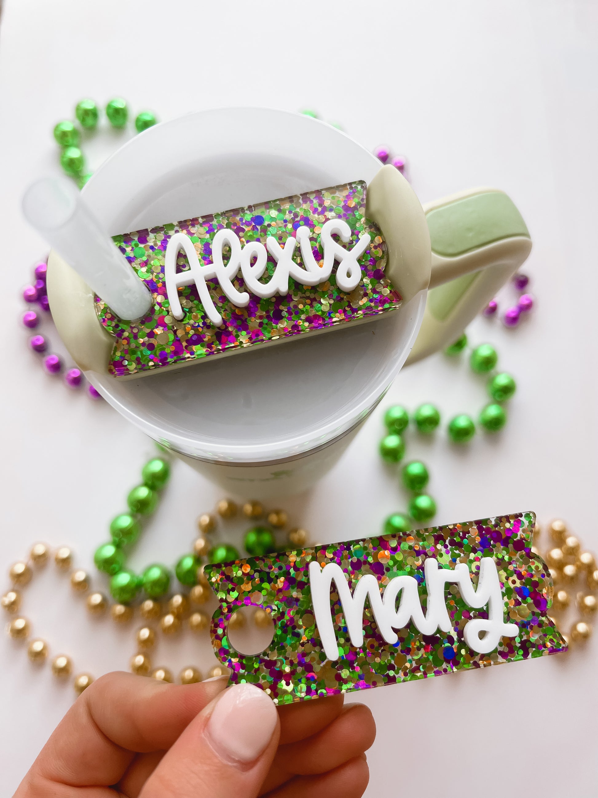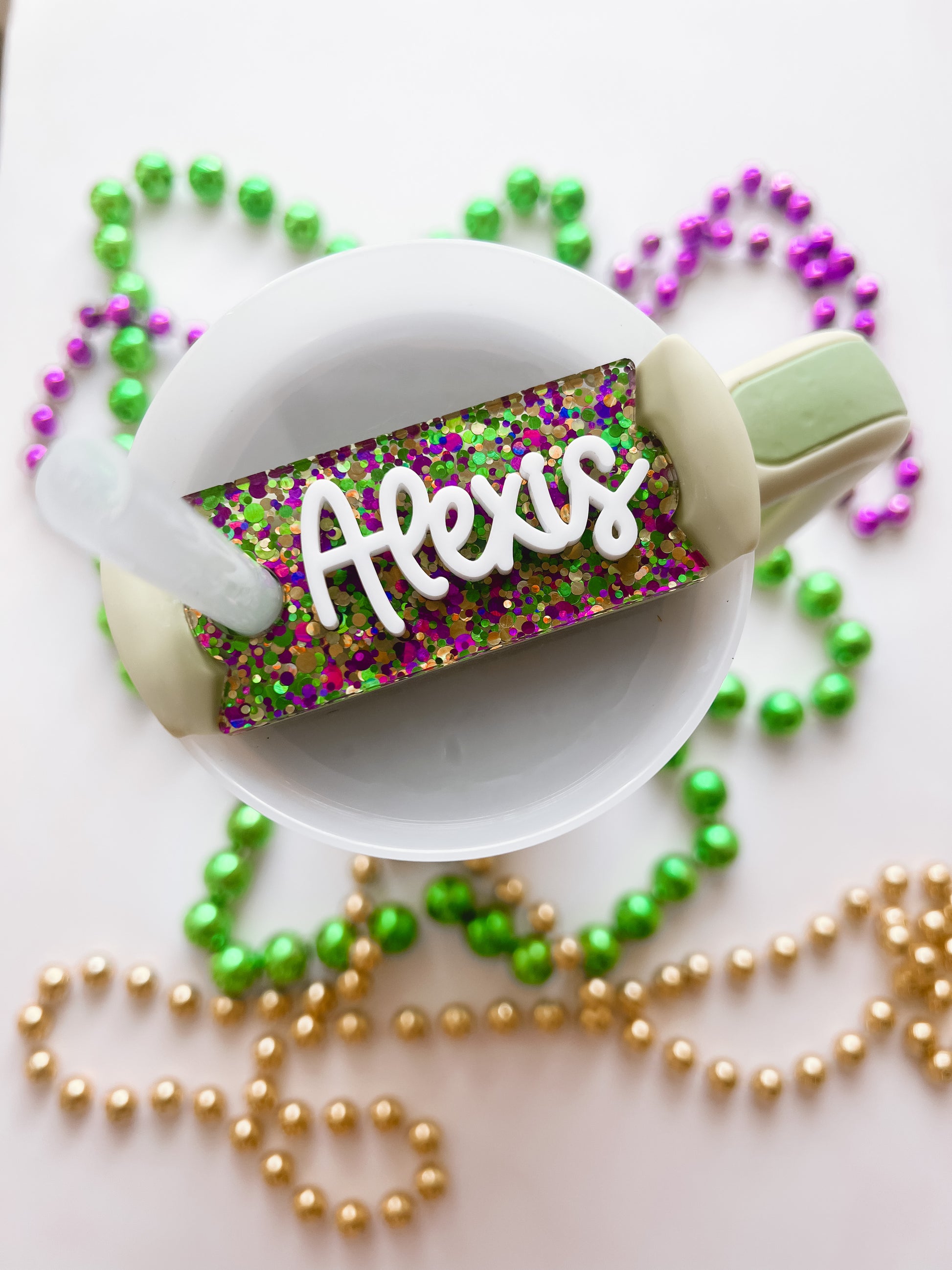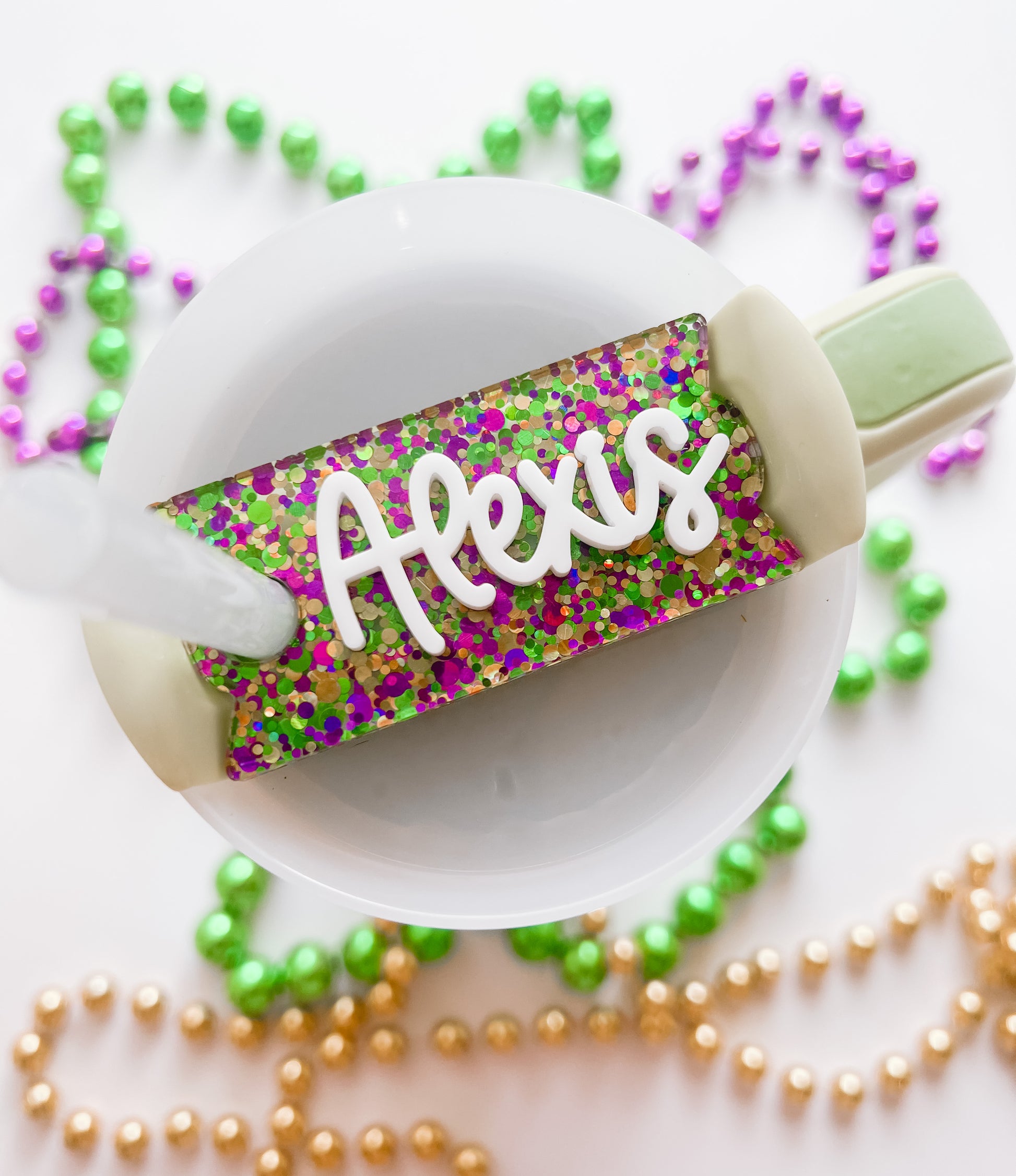 Add a little Mardi Gras FUN to your tumbler with this Stanley personalized name plate! This perfect little accessory to add to your tumbler will help you differentiate from your friend's and families Stanley cups!