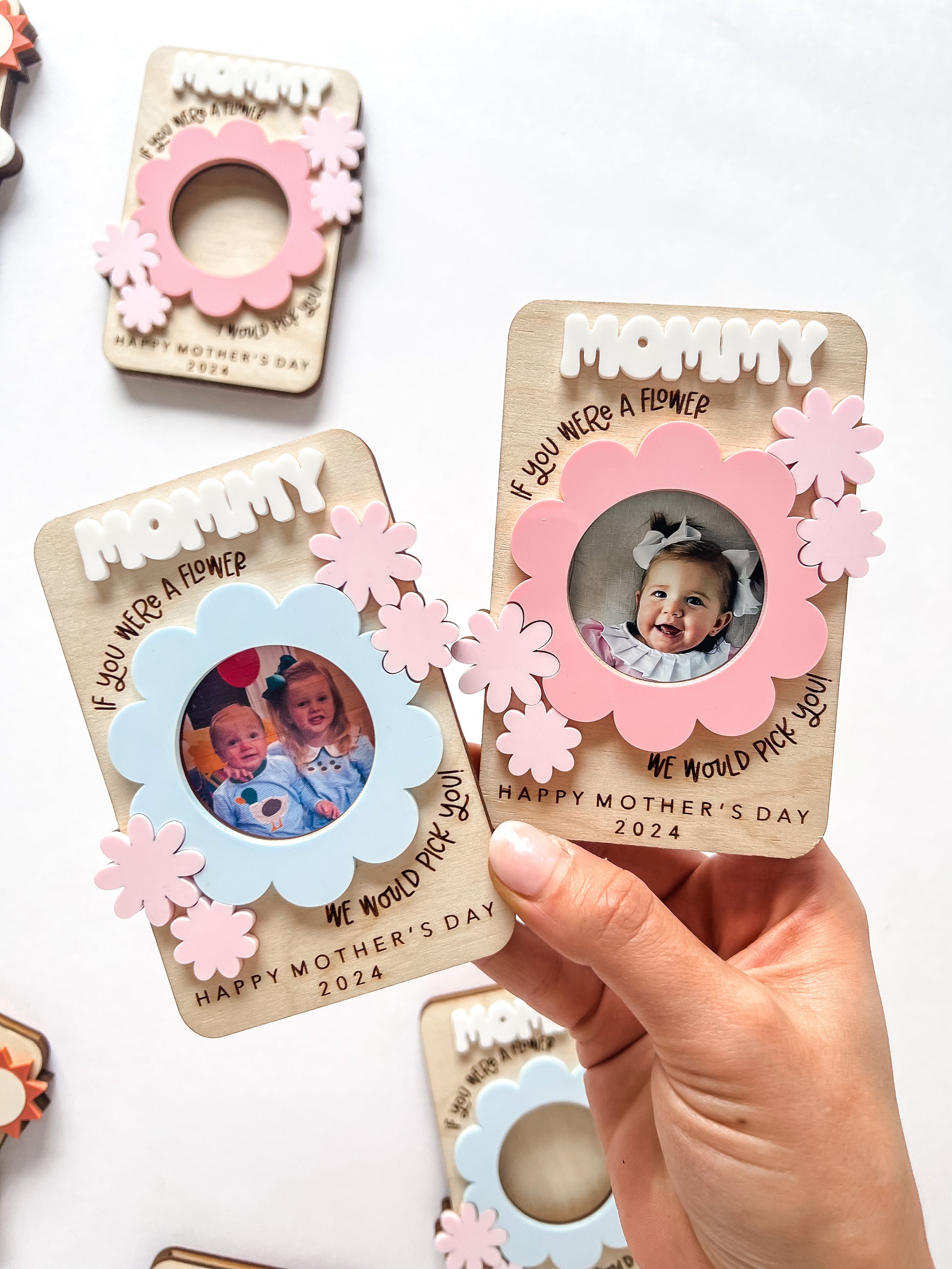 Add a touch of joy to Mom's fridge! Our Mother's Day-themed fridge magnet, crafted from acrylic and wood, is not just a magnet, it's a memory keeper! Sized perfectly for a wallet photo, it's a cute and personalized way to brighten her day.