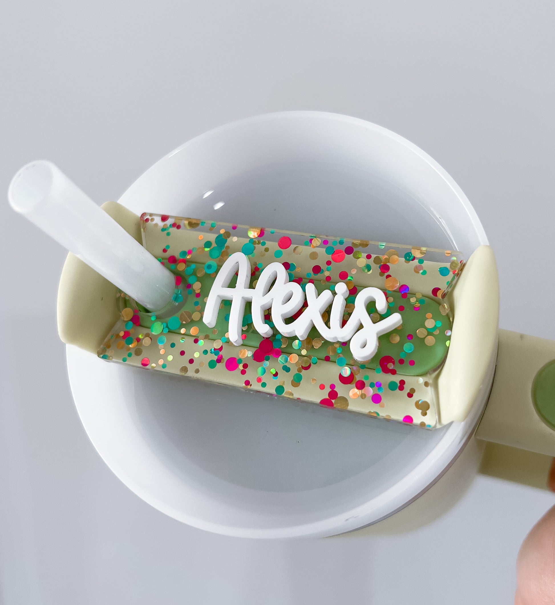 *These name plates are not meant to sit flush again the top of your lid. They will crack if you push it too hard. The are meant to slide over the straw and fit snug enough for the tag to be secured.*
